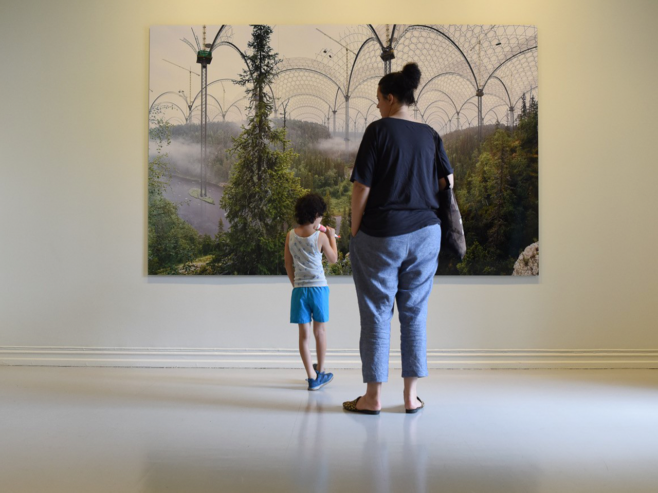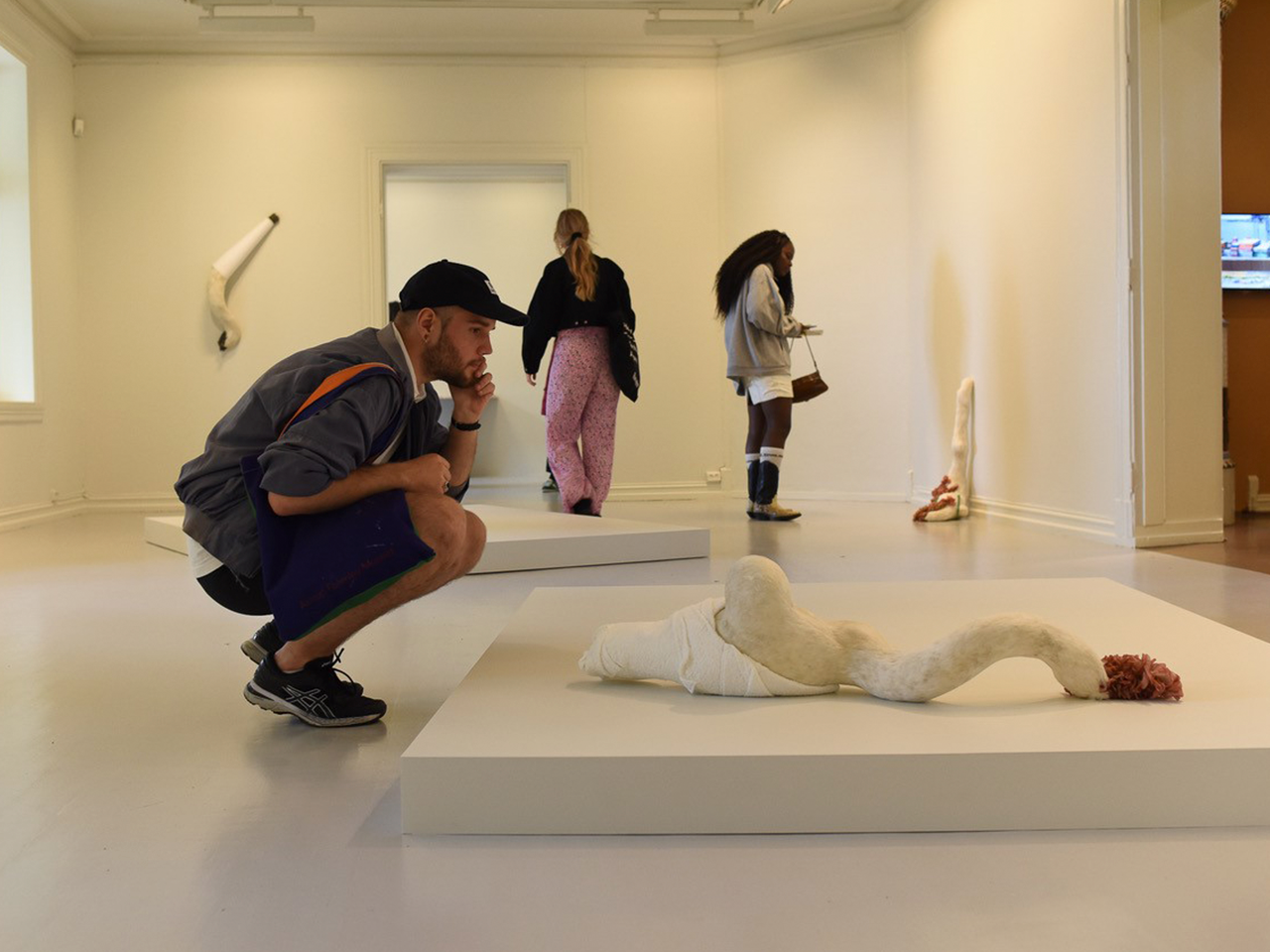 La oss begynne med verkene til Erik Öberg. Hans fjærskulpturer beveger seg utover den kjølige tradisjonen som kjennetegner minimalistisk kunst. I stedet blir de til noe levende og sensuelt. Ved siden av Erik Öberg finner vi verkene til Christodoulos Panayiotou, som også tar utgangspunkt i det materielle når han observerer historien bak hvordan en gjenstand blir laget og hvordan materialet definerer vår oppfatning av den. I dette rommet kan vi reflektere over de unike egenskapene ved marmor, og at dette materialet lever lenger enn oss. Fotografiene til Ilkka Halso, som er i samme etasje, presenterer mulige fortider og fremtider ved hjelp av fantasmagoriske gjenstander og konstruksjoner som befinner seg i naturen.